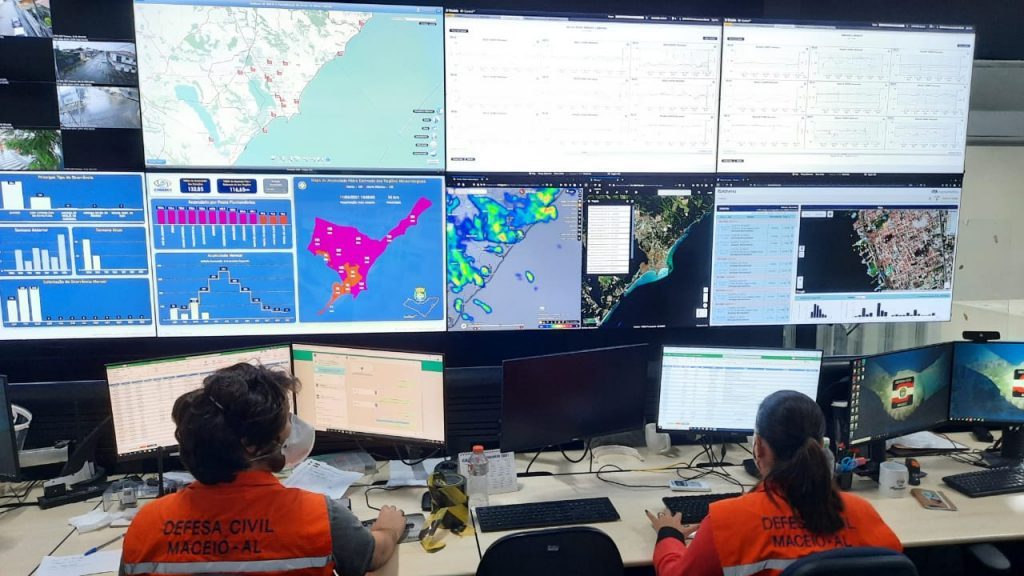 Técnicos da Defesa Civil monitoram volume de chuva. Foto: Erik Maia/Secom Maceió