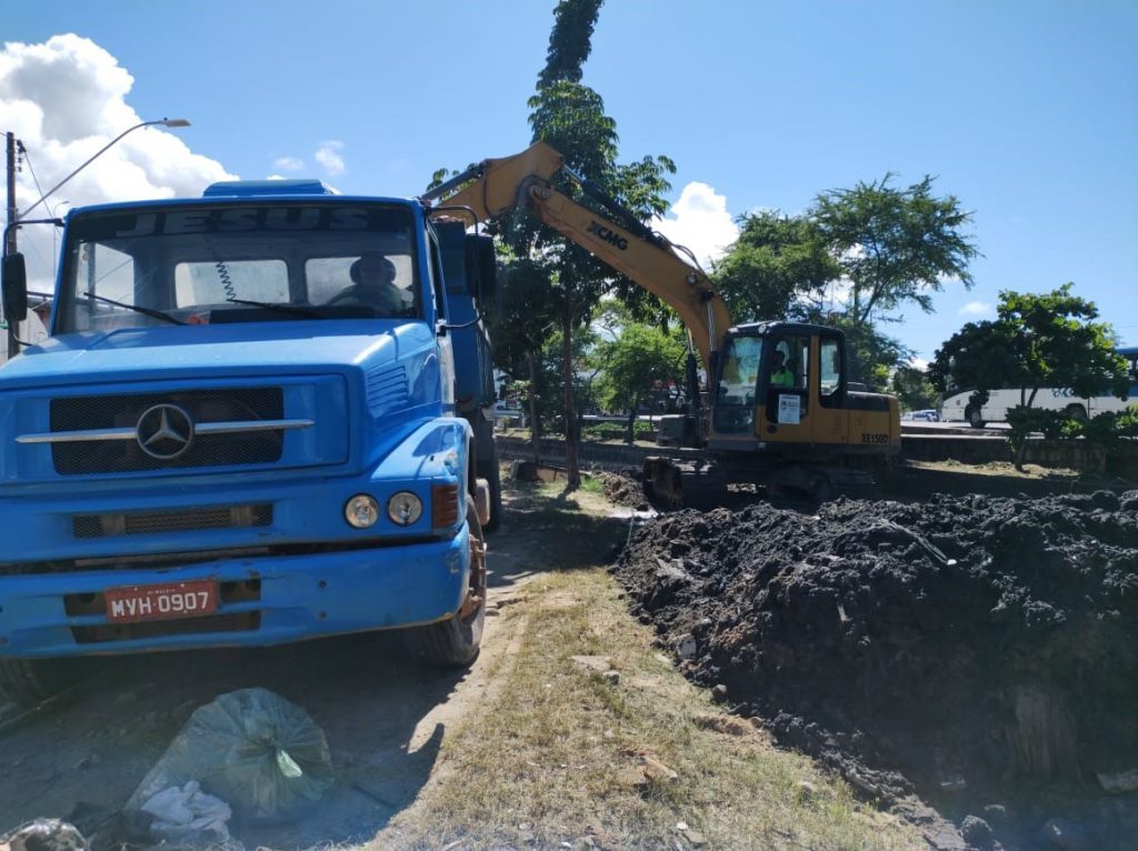 Serviço sendo realizado com a retroescavadeira. Foto: Ascom Sudes