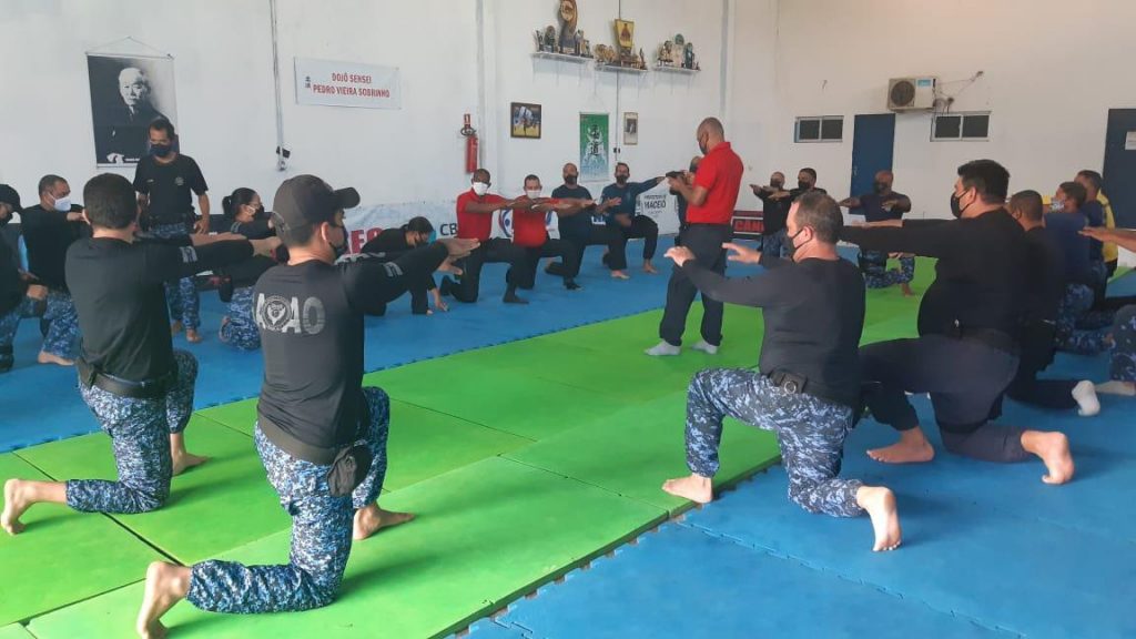 Durante o Curso, os participantes tiveram aulas sobre legislação penal, abordagem em veículos, atendimento pré-hospitalar, imobilização e algemação, além de noções de serviço básico e treinamento físico, técnico-tático de confronto corporal.