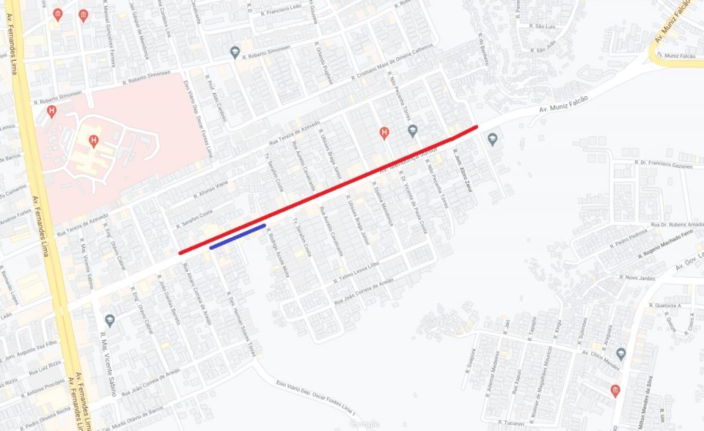 A interdição da faixa sentido Farol para o Barro Duro, conforme ilustrado na imagem na cor azul, terá início hoje, com previsão de conclusão para o dia 2 de julho. Já a via sentido Barro Duro para o Farol, sinalizada na cor vermelha, as obras serão iniciadas nesta quinta-feira (17), com estimativa de término para o dia 23 do próximo mês.