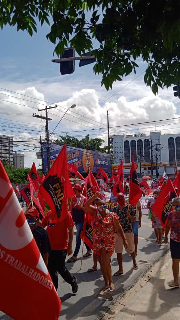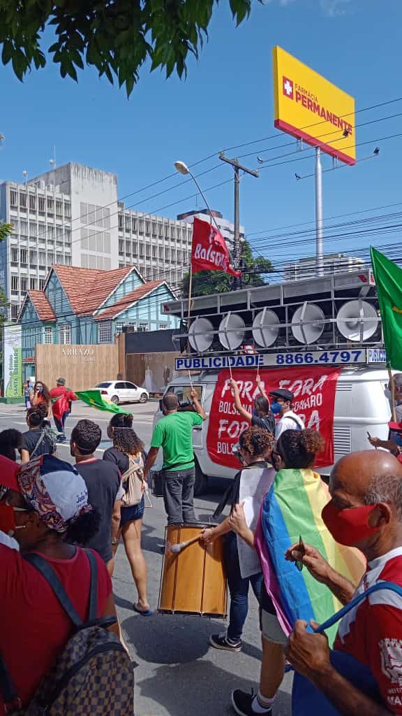 Maceió amanheceu neste sábado (19) no rito das manifestações contra o presidente Jair Bolsonaro que ocorrem em todo o País com passeata com faixas e cartazes, ao som de “fora Bolsonaro, genocida”.