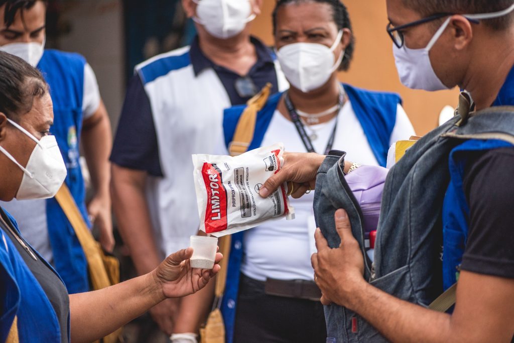 Na residência da dona de casa, Edileusa Leite Araújo Silva, a agente de endemia pôs o larvicida nas vasilhas com água, nos ralos e em outros espaços do imóvel que tinham acúmulo de água. Ao receber todas as orientações, a moradora se comprometeu em fazer o acompanhamento correto para garantir a eliminação dos focos do mosquito.
