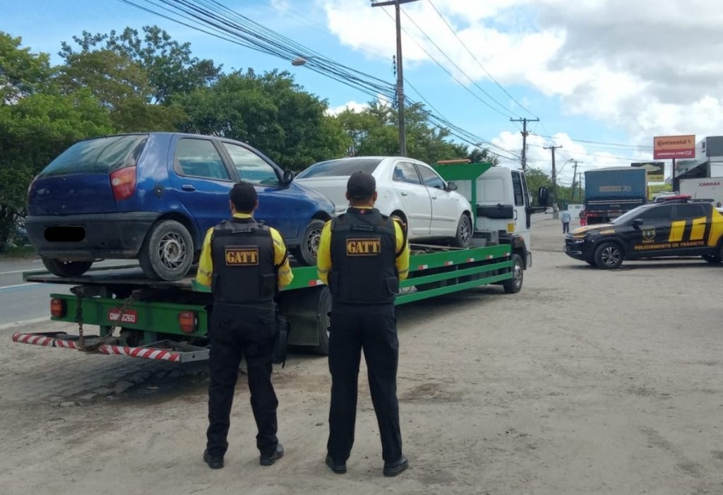 Veículos são removidos e transportados ao pátio de armazenamento. Foto: SMTT