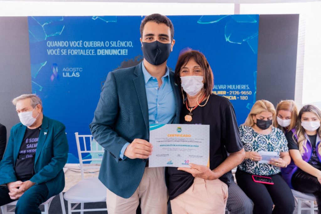 Durante a solenidade, foram entregues os certificados do primeiro curso de atendimento humanizado a vítimas de violência doméstica multidisciplinar. O curso foi realizado pelo Gabinete de Políticas Públicas para Mulheres e participaram da formação, 50 coordenadores dos Centros de Referência de Assistência Social (CRAS) e de Referência Especializado de Assistência Social (Creas), além da Casa de Abrigo, CadÚnico, Coordenação dos Direitos Humanos e Proteção Especial.