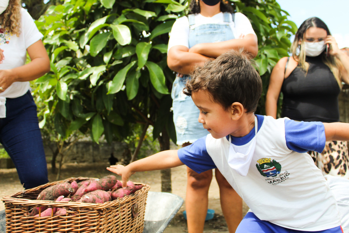 Os estudantes do Centro Municipal de Educação Infantil (CMEI), José Madltton Vitor da Silva, no Benedito Bentes, tiveram uma recepção divertida e sustentável nesta sexta-feira (10), com a colheita das batatas da horta da escola. Os pequenos tiveram a oportunidade de colocar a mão na terra e reencontrarem seus colegas de turma, com o retorno às aulas previsto para a segunda-feira (13).