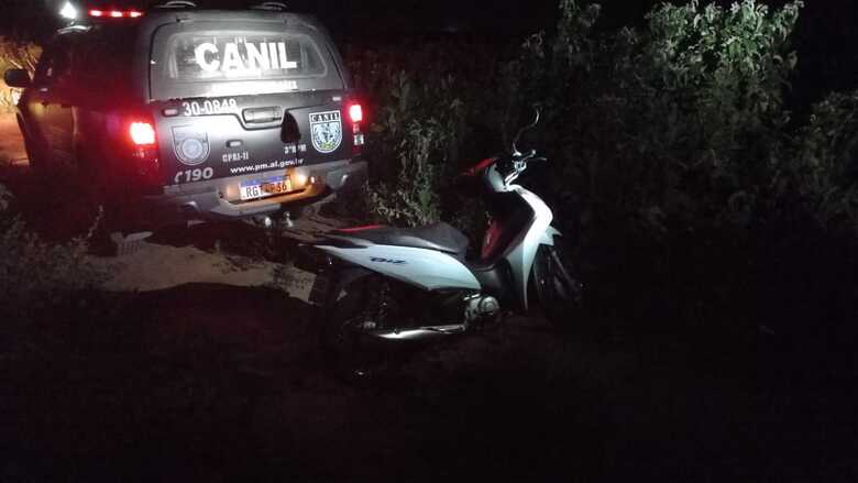 Ao chegar ao local, os militares encontraram a Honda Biz 110, de cor branca, coberto de galhos, como se alguém tivesse camuflado o bem. Feita a consulta, foi constatado que a moto havia sido roubada no mesmo dia por um indivíduo armado com um facão. Diante do fato, o veículo foi levado à Central de Polícia, onde foi confeccionado o Auto de Apresentação e Apreensão.