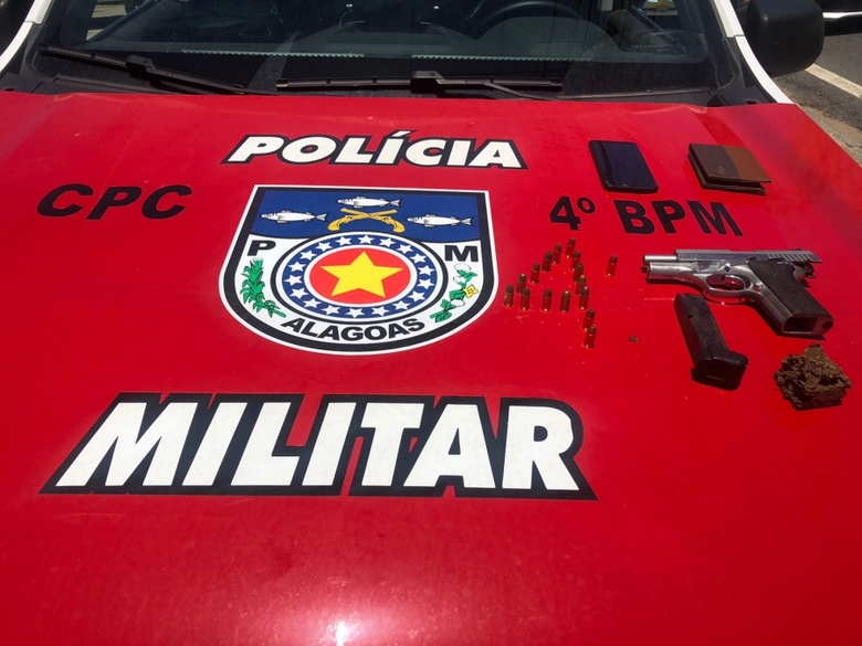 Na entrevista policial, o rapaz informou aos militares que tinha guardado droga em sua residência, localizada na região, e indicou o local, autorizando assim a entrada para a busca domiciliar. Durante a varredura, a equipe encontrou 30 gramas de maconha. Como o indivíduo não possuía documentação da pistola, ele foi encaminhado à Central de Flagrantes I, no Farol, para a realização dos procedimentos cabíveis. Junto à Polícia Civil, o infrator foi autuado pelo crime de Porte ilegal de arma de fogo e por ser consumidor de entorpecente. A ação contou ainda com o apoio das guarnições Solo 03 e FT15.