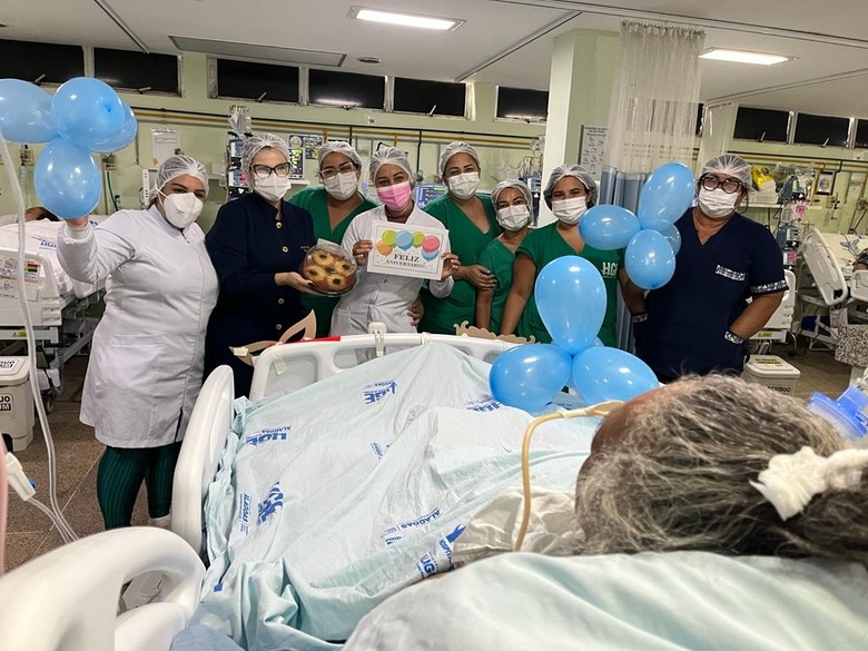 HGE celebra aniversário de 68 anos de paciente internada na UTI