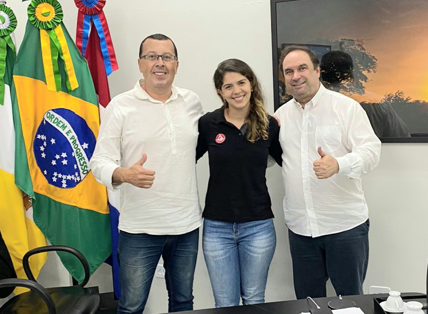 Nesta terça-feira (10), o prefeito Luciano Barbosa e o superintendente de Esportes Benilton Rodrigues receberam a visita da professora e faixa preta de jiu-jitsu Dandara Guimarães.