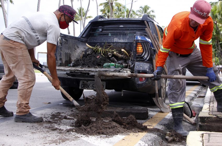 Infraestrutura realiza limpeza em galerias da orla marítima de Maceió