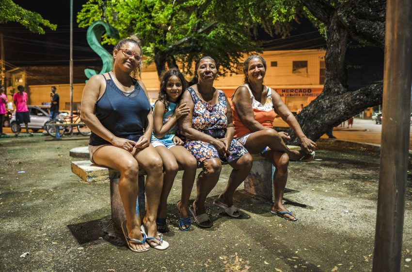 Moradoras do bairro Ponta Grossa, as vizinhas Maria Lúcia Bernardes, Aline Maria Rodrigues e Sheilla Maria da Silva não perdem um momento de lazer na Praça Moleque Namorador. Elas são parte dos mais de 20 mil moradores da região que foram beneficiados com a realização do mutirão de serviços da Superintendência Municipal de Iluminação Pública (Sima), ação que foi finalizada na manhã desta sexta-feira (13) e restabeleceu mais de 50 pontos de luz na comunidade.