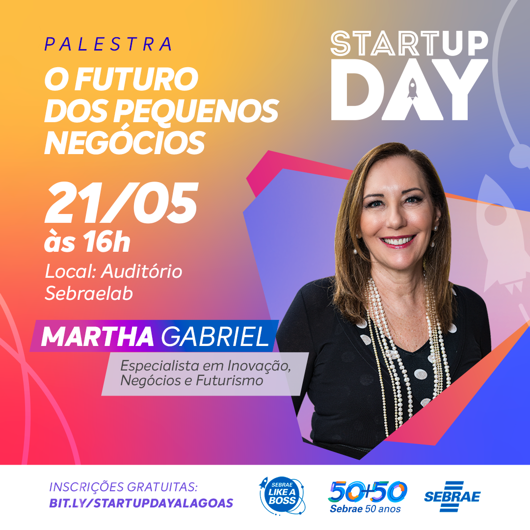 Às 16h, Martha Gabriel, especialista em inovação, negócios e futurismo, falará sobre o futuro dos pequenos negócios. Martha é um ícone multidisciplinar na América Latina nas áreas de negócios, tendências e inovação.