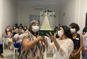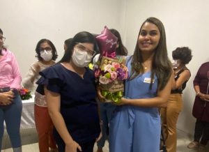 Surpresa – Que a palestra seria sucesso, todos sabiam. Mas nem todo mundo sabia de uma outra programação. A coordenadora de Serviço Social do HEA, Thaysa Mariá, convidou as profissionais do setor para fazer uma homenagem a uma das mais experientes e considerada referência pelas colegas de trabalho.