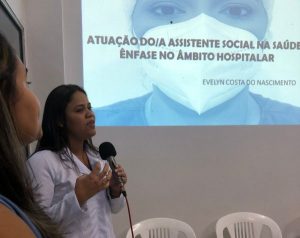 A programação divulgada oficialmente contava com a palestra da assistente social Evelyn Costa do Nascimento, que atualmente trabalha no Hospital da Mulher. Evelyn fez uma viagem pela história do Serviço Social, ainda mostrou ao público as inquietações da profissão, os trabalhos que podem ser desenvolvidos e as vitórias conquistadas ao longo do tempo. “Pudemos discutir um pouco sobre o exercício profissional na saúde, especificamente no ambiente hospitalar, nosso fazer profissional no dia-a-dia, planejamento e ações, e trocamos conhecimento com o público”, afirmou a aplaudida Evelyn.