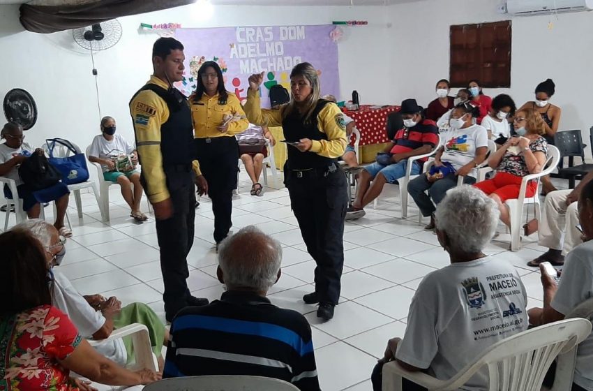 Pensando na segurança dos idosos no trânsito, o Serviço de Convivência e Fortalecimento de Vínculos do Centro de Referência de Assistência Social, (Cras) Dom Adelmo Machado, realizou uma palestra em parceria com agentes da Superintendência Municipal de Transportes e Trânsito (SMTT) para cerca de 40 idosos, no bairro Prado.