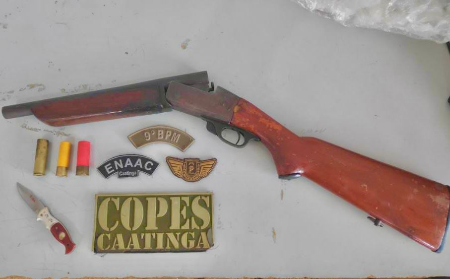 Militares da Companhia de Operações Policiais Especiais do Sertão/Caatinga (Copes), pertencentes ao 9º BPM apreenderam uma espingarda calibre 12. O fato aconteceu no Distrito Piau, município de Piranhas. Foram conduzidos dois indivíduos (de 33 e 32 anos) e apreendidos dois menores (um de 15 e outro de 13 anos), todos do sexo masculino.