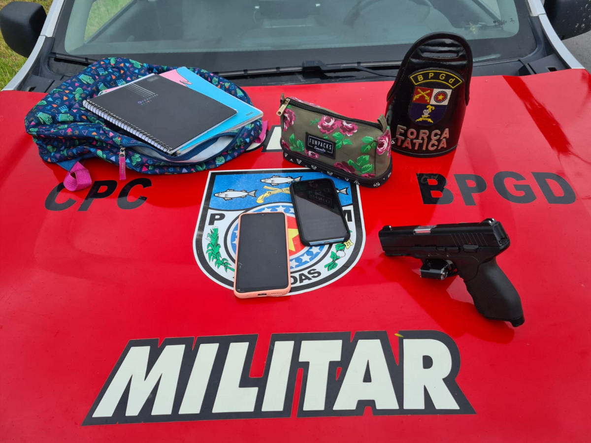 A guarnição da Força Tática foi acionada por populares informando sobre uma dupla em um moto cometendo assaltos na rodovia BR 104, na região do bairro Cidade Universitária. A equipe visualizou os suspeitos, que empreenderam fuga ao perceberem a aproximação policial, mas foram contidos e abordados. Com eles, estava o material ilícito. O caso foi encaminhado à Central de Flagrantes, onde vítimas também compareceram e confirmaram se tratar dos autores do crime.