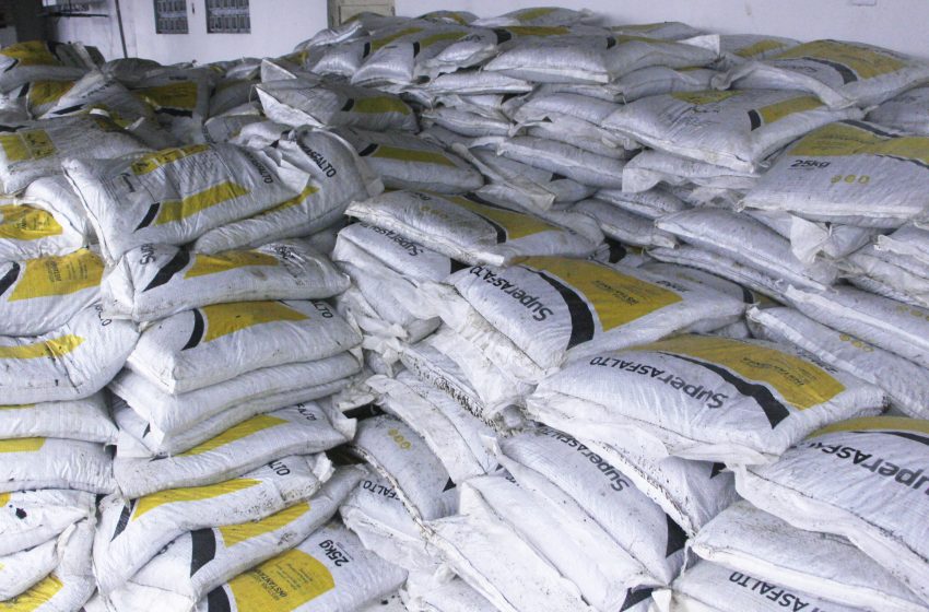 Asfalto ensacado a frio estocado para ser utilizado. Foto: Wilma Andrade/Ascom Seminfra