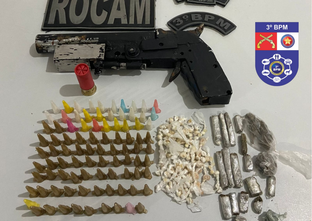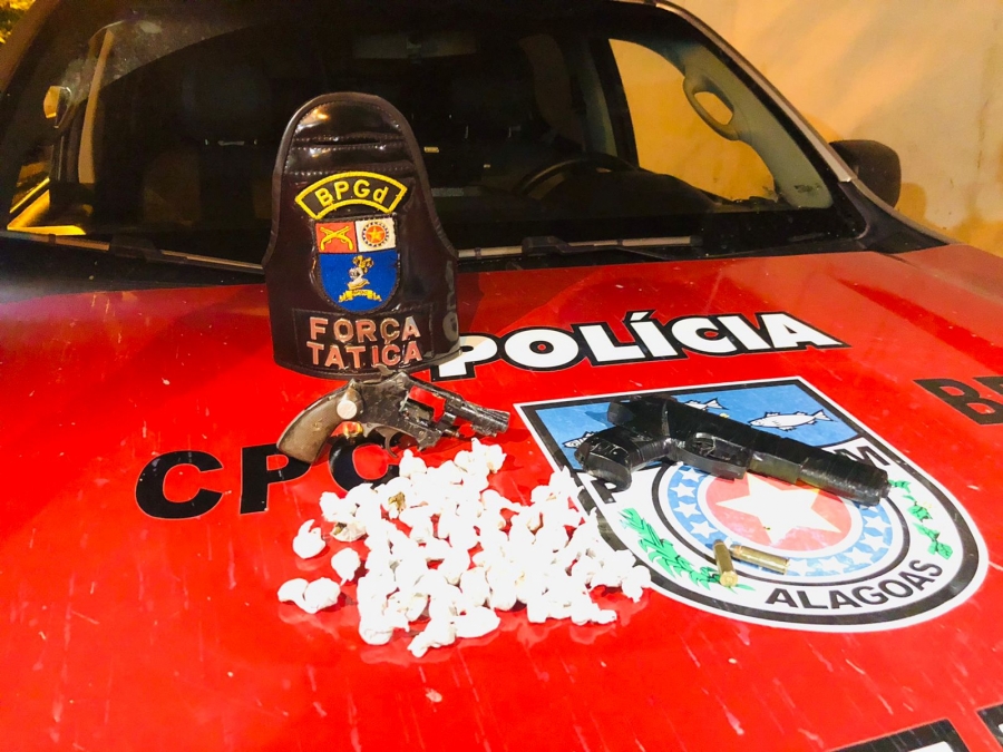 Em ações distintas, equipes do 3º Batalhão de Polícia Militar (BPM), flagraram uma série de ilícitos. Um dos casos foi de Tráfico de drogas e porte ilegal de arma de fogo de uso permitido ocorrido no bairro Canafístula, em Arapiraca, por volta de 20h de quarta-feira (1º). Um indivíduo do sexo masculino, de 20 anos de idade, foi preso. Com ele, foram apreendidas: 20 bombinhas de maconha, 91 pinos de cocaína, 110 pedras de crack e uma arma de fogo artesanal calibre 12.