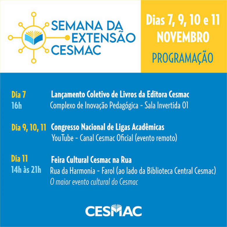Semana de Extensão Cultural do Cesmac acontece com Lançamento de Livros, Congresso de Ligas Acadêmicas e Feira na Rua