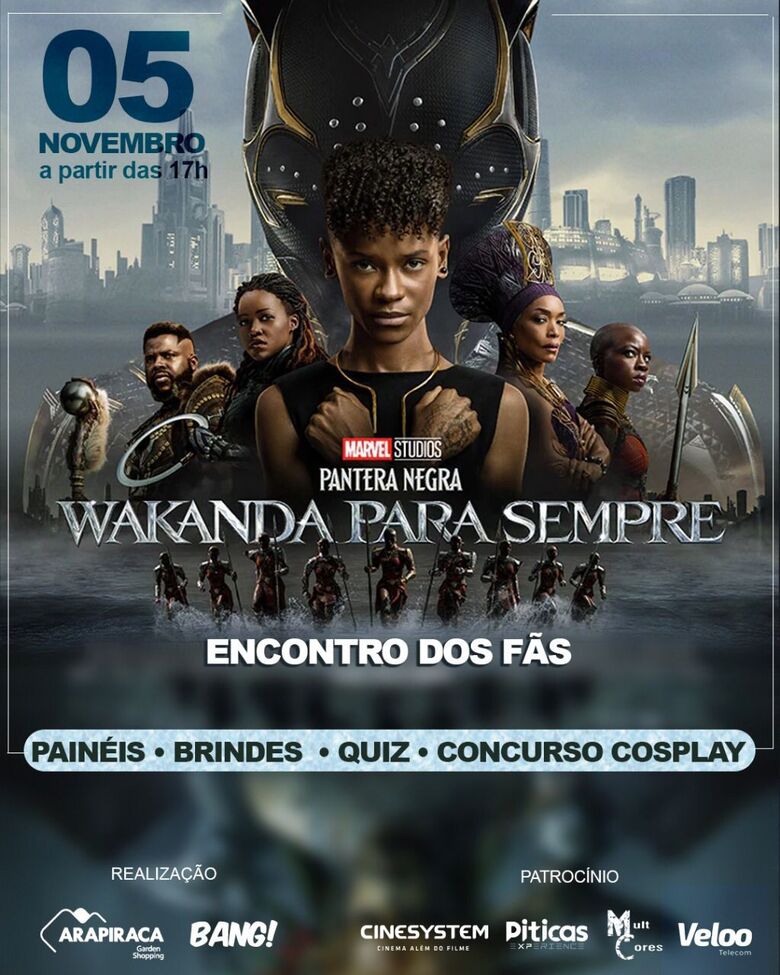 O segundo filme da franquia Pantera Negra estreia no próximo dia 10 de novembro e os fãs arapiraquense poderão antecipar um pouco da emoção de Wakanda.