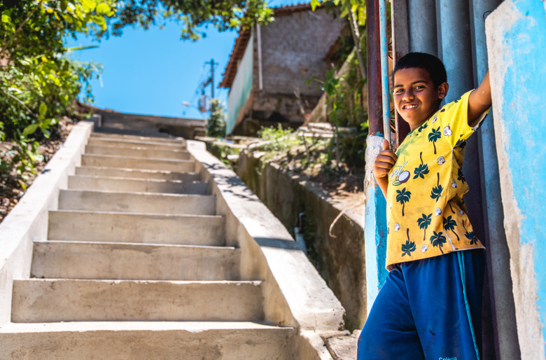 “Era um degrau mais alto que o outro e a chuva foi destruindo. Entrava água na minha casa. No tempo de chuva, descia barro, lama, tudo. Para descer, a gente ia se segurando, mas quando não dava, caía na valeta. Agora vai ficar bom, porque vai cobrir o córrego, vai proteger muito, está ficando decente”, comemora.