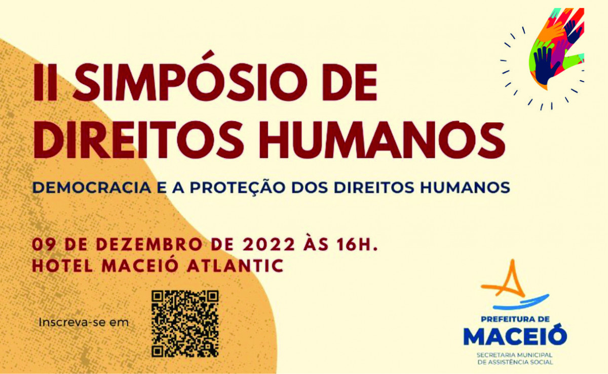 Em comemoração aos 74 anos da Declaração Universal dos Direitos Humanos, a Diretoria de Promoção de Cidadania e Direitos Humanos, da Secretaria Municipal de Assistência Social (Semas) realizará no dia 9 de dezembro o II Simpósio de Direitos Humanos – Democracia e a Proteção dos Direitos Humanos. O evento acontecerá no Hotel Maceió Atlantic Suits, na Ponta Verde, às 16h.