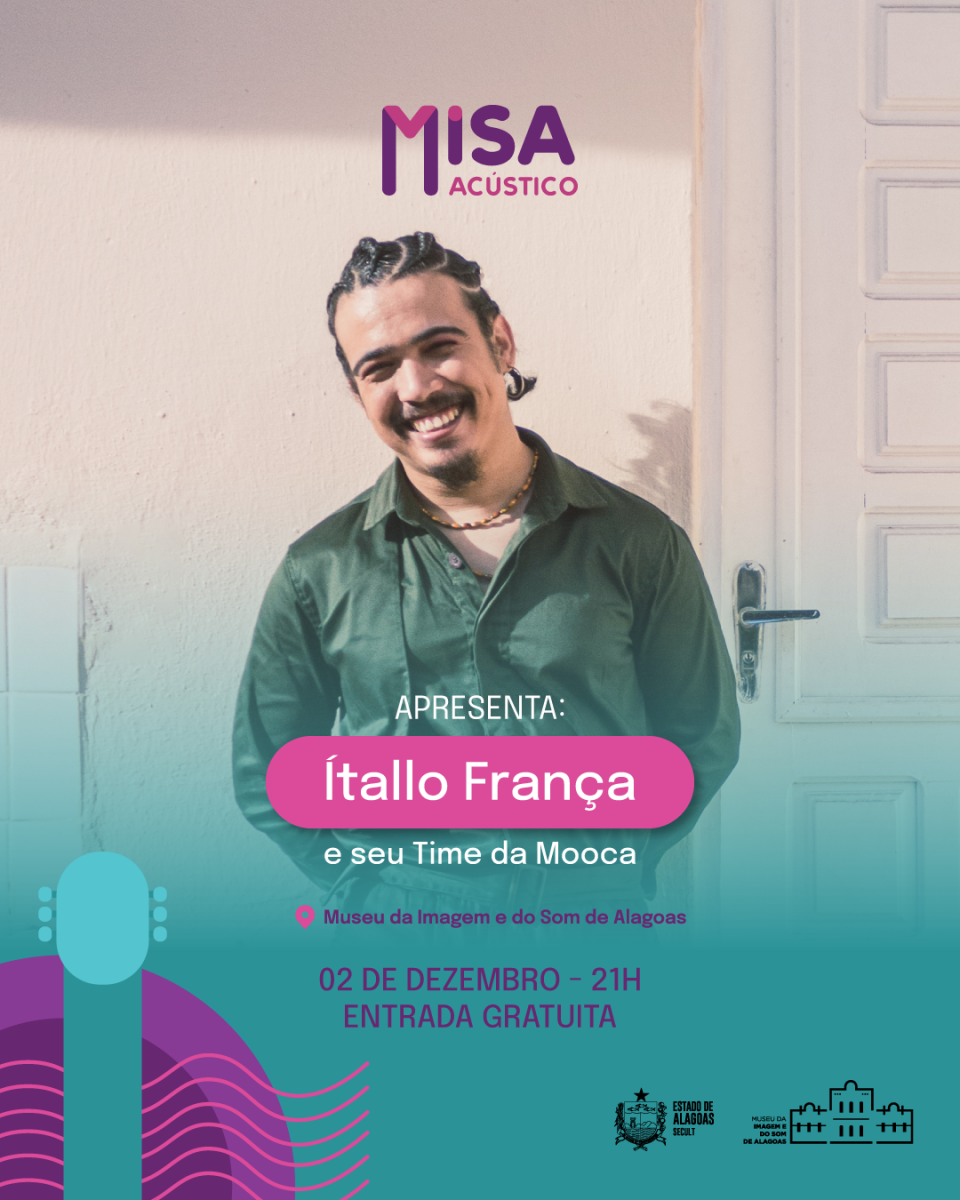 Na próxima sexta, dia 2 de dezembro, às 21h, o público poderá curtir o show do artista Ítallo França e seu Time da Mooca no projeto Misa Acústico, que acontece no Museu da Imagem e do Som de Alagoas, no bairro histórico do Jaraguá, em Maceió. A entrada é gratuita.