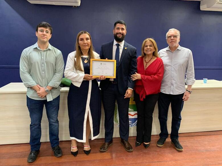 A solenidade aconteceu no auditório do Poder Legislativo Municipal e foi presidida pelo autor da proposta que concedeu a honraria. A vereadora Silvania Barbosa (MDB), que acompanhou de perto a atuação da médica no serviço público, além de familiares e antigos colegas de trabalho da servidora, prestigiaram o evento.