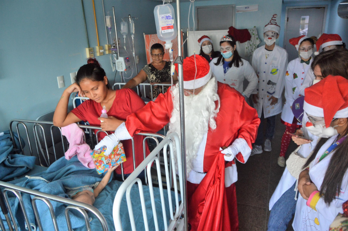 A magia do Natal foi sentida pelas crianças da Pediatria do Hospital Geral do Estado (HGE), em Maceió, na quinta-feira (22). Cinema, pipoca, doces, alegria, presentes e até o Papai Noel fizeram parte da programação. O resultado esteve estampado no sorriso dos pequenos, de seus familiares e até dos servidores, responsáveis pela organização da celebração.