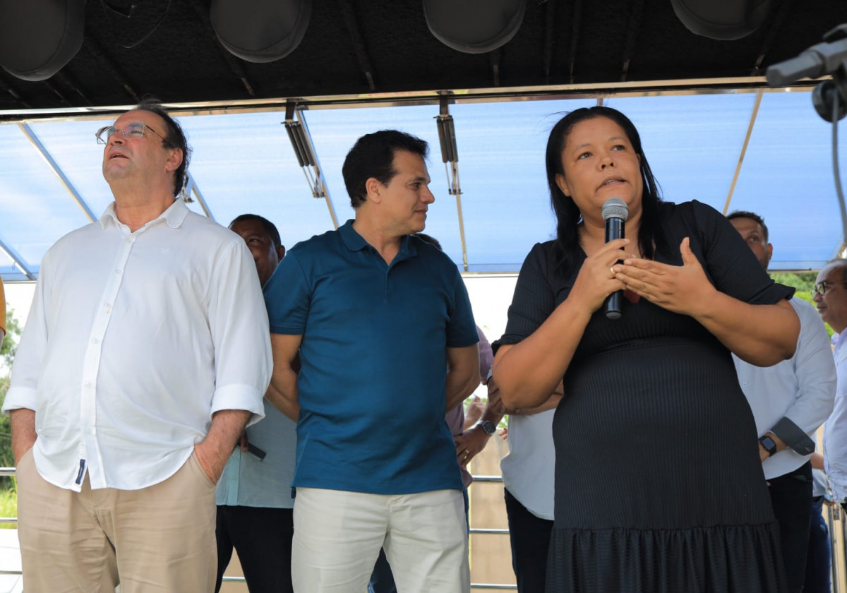 Representando a família Enéas, a professora Petrúcia Enéas agradeceu ao prefeito Luciano Barbosa e equipe pela entrega da pavimentação asfáltica da estrada, que era um sonho acalentado há várias décadas pelo seu pai e por toda a comunidade de Cangandu e localidades vizinhas.