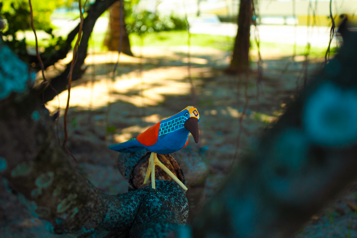 Madeira, cores e criatividade – esses são os elementos dos pássaros dos artesãos Jailton e Jamille, esculpidos com delicadeza e precisão, e pintados cuidadosamente com cores que vão além do que a natureza é capaz de criar. Pai e filha, os artesãos do povoado da Ilha do Ferro, a cerca de 240km da capital alagoana, estão sem agenda para encomendas dos pássaros até fevereiro do ano que vem.
