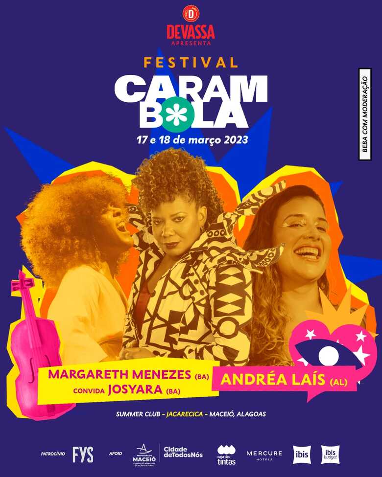 O Festival Carambola 2023, que acontecerá no dias 17 e 18 de Março no Summer Club Jacarecica, em Maceió, anuncia suas primeiras atrações: a cantora e compositora Margareth Menezes, que terá como convidada especial a artista Josyara – ambas da Bahia – e a alagoana Andréa Laís.