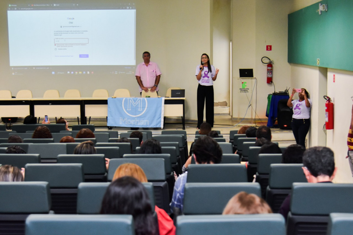 A palestrante Dra. Clodis Maria Tavares é enfermeira, coordenadora da Rede Nacional Universitária de Combate à Hanseníase e voluntária do MORHAN, que é o Movimento de Reintegração das Pessoas Atingidas por Hanseníase. A profissional falou sobre o avanço da doença e sobre a importância das ações de combate e conscientização.