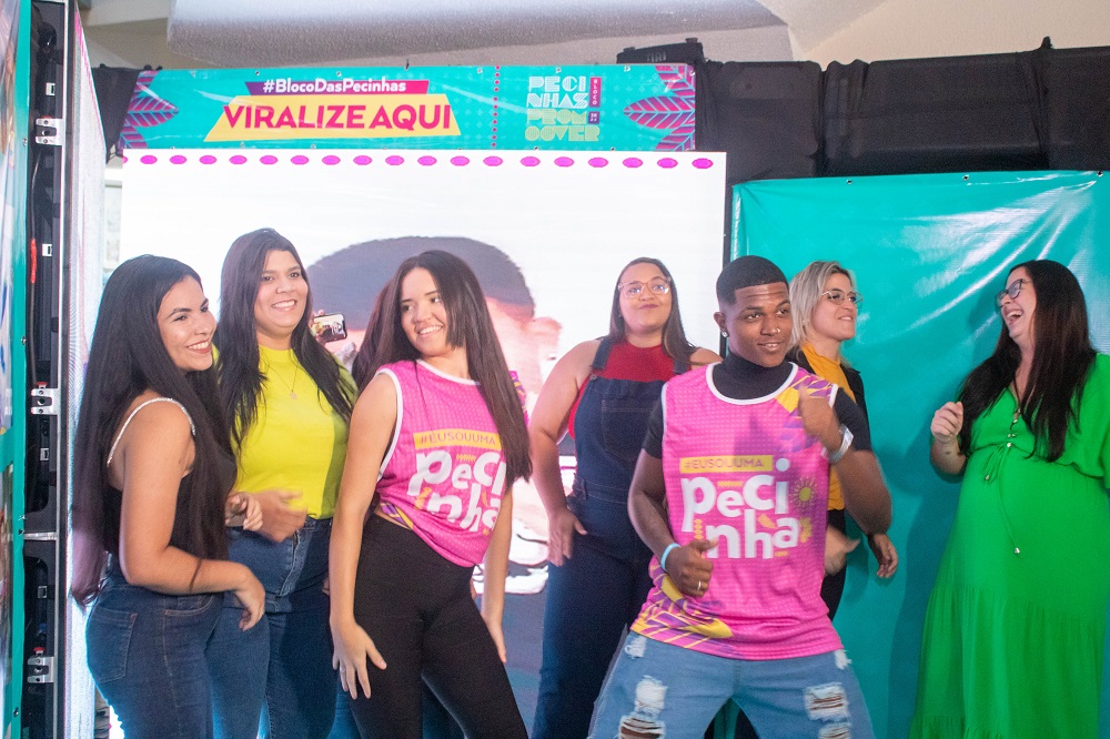 O clima de carnaval já está instalado no Maceió Shopping. Na tarde da última quinta-feira, (12), o Bloco Pecinhas de Maceió reuniu imprensa e influenciadores para a inauguração da Arena Pecinhas em parceria com portal Maceió 40 Graus. Os convidados puderam conferir em primeira mão a exposição de fotos dos 40 anos das Pecinhas de Maceió e o espaço interativo, onde a turma Tiktoker pode fazer fotos e as famosas dancinhas, embalados pelos hits do Parangolé.