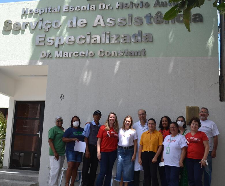 Reitor Henrique Costa e a supervisora-geral Rita Rebelo reinauguraram o Serviço de Assistência Especializada Dr. Marcelo Constant (SAE) junto com a equipe do setor. Foto: Ana Paula Tenório