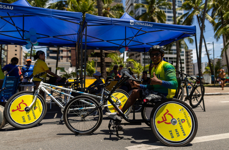 Renato Lourenço, atleta paraolímpico da equipe de basquete de cadeiras de rodas da Associação dos Deficientes Físicos de Alagoas (Adefal), chegou no evento cedo. Empolgado, se exercitou na orla com uma das bikes e destacou a ação como incentivo à prática do esporte.