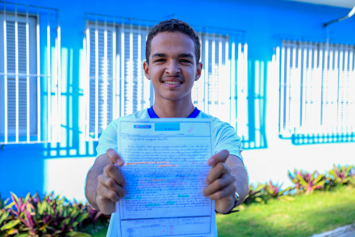 “Sempre gostei de estudar, mas eu não sabia o que fazer quando comecei a treinar minha escrita para a redação. Foi minha professora quem abriu a minha mente. Ela conseguiu fazer com que eu evoluísse. Não foi à toa que, durante essa preparação, consegui nove ‘notas mil’ em redação”, conta o estudante.