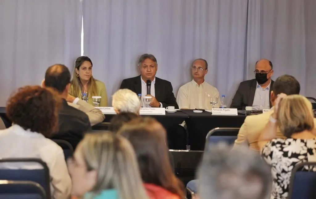 O presidente do Conselho de Secretarias Municipais de Saúde de Alagoas (Cosems-AL), Rodrigo Buarque, os jornalistas Mary Wanderley, o diretor Pedro Madeiro (gestor da Saúde de Coruripe) e a apoiadora regional da entidade Kathleen Moura participaram das discussões, junto a presidentes, técnicos e jornalistas dos Cosems de outros Estados do país.