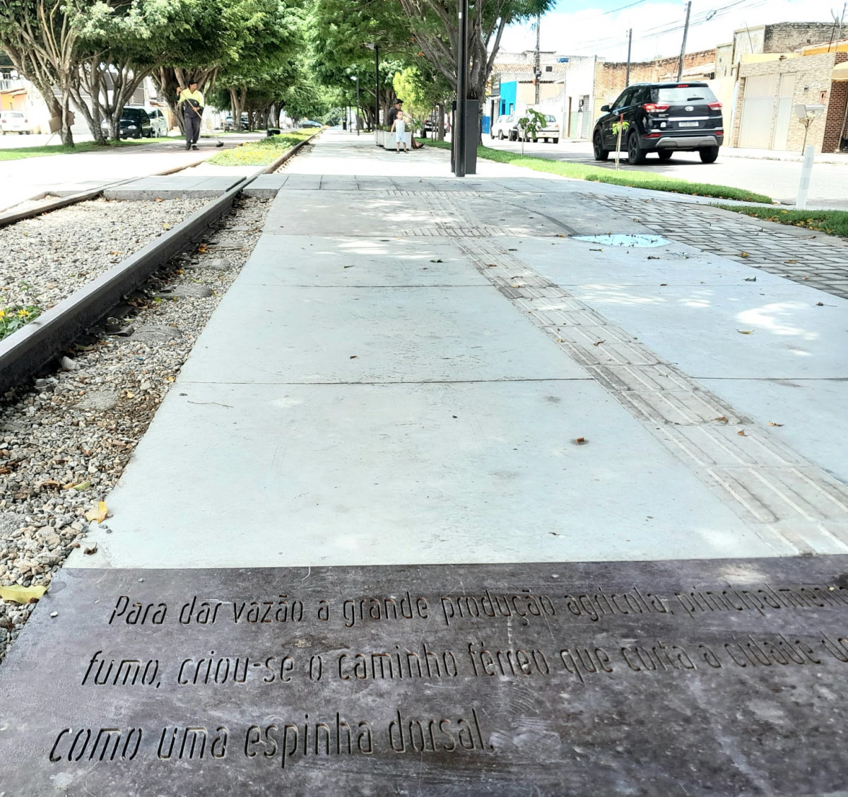 Além disso, a história da implantação da rede ferroviária de Arapiraca é contada em placas de metal fixadas no piso da ciclovia.
