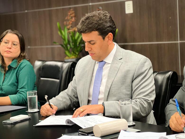 Secretário Diogo Teixeira assina renovação da parceria. Foto: Matheus Omena / Ascom Seris
