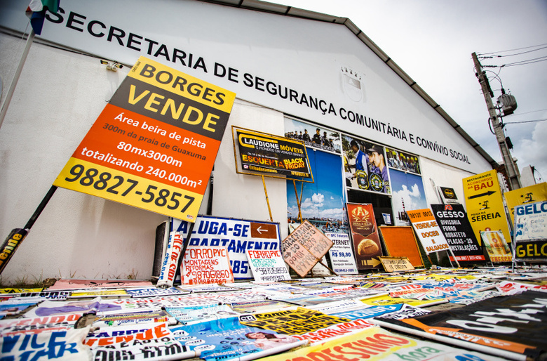 Os agentes da Secretaria recolheram diversas placas, faixas e banners que estavam em desacordo com a Lei nº 3.538/1985, que instituiu o Código de Postura do Município de Maceió, e também não seguiam o que determina o decreto nº 7.613/2014.