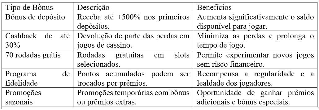 O 1win atrai novos jogadores e mantém os atuais motivados com uma variedade de bônus e promoções. Desde generosos bônus de boas-vindas até ofertas regulares de recarga, cashback e torneios emocionantes, há sempre uma oportunidade de aumentar seu saldo de jogo e maximizar suas chances de ganhar.