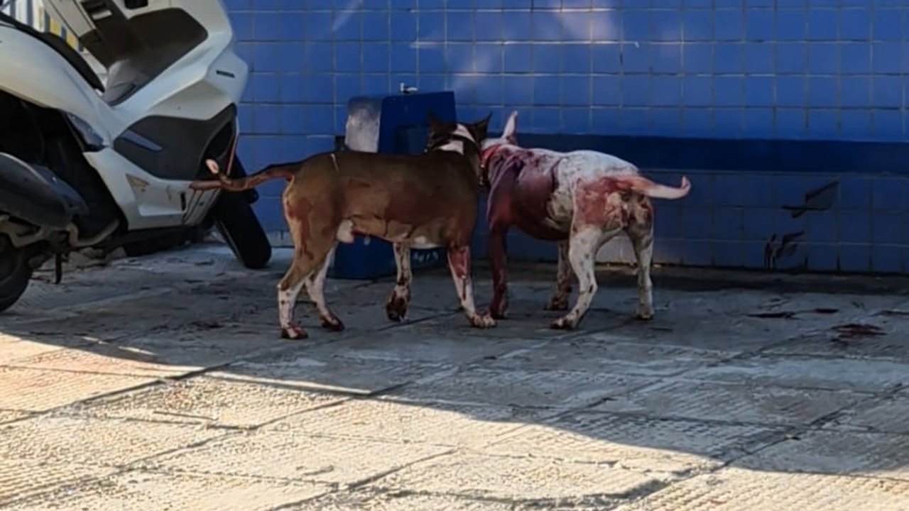 Em outra imagem, registrada por câmeras de monitoramento, é possível ver os dois cachorros soltos e sem focinheiras correndo pelas ruas.