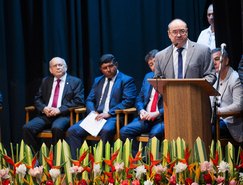 “Recebo esse diploma com muita alegria e responsabilidade. Estou sendo reconduzido pelo voto democrático do povo de Arapiraca para o quarto mandato, no ano do centenário de nosso município. Peço a Deus, mais uma vez, muita sabedoria, paciência e coragem para enfrentar os desafios e trabalhar diariamente com o apoio do povo para honrar os votos e fazer de Arapiraca uma cidade com mais desenvolvimento e justiça social”, afirmou Luciano Barbosa.