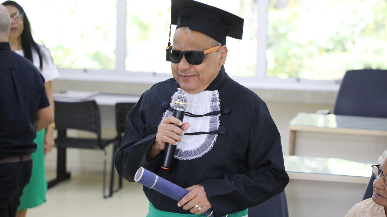 Colação de grau: estudante cego de 54 anos se forma em Serviço Social