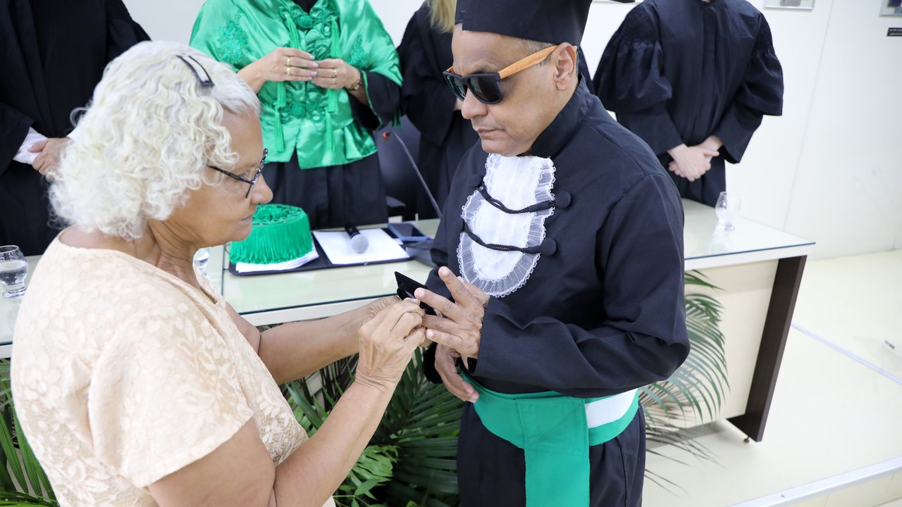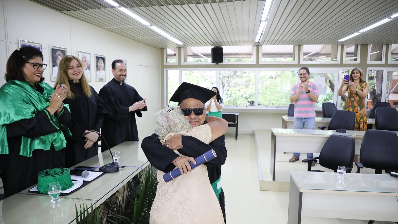 As vestes talares e o clima de emoção, na manhã desta segunda-feira (16), na Sala dos Conselhos, na Reitoria da Universidade Federal de Alagoas (Ufal), indicavam um momento de grande importância. A solenidade de colação de grau, presidida pela vice-reitora Eliane Cavalcanti, foi solicitada para conferir a diplomação de Rinaldo José dos Santos, de forma antecipada em vista das complicações de saúde.