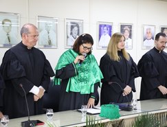 Todas as falas da mesa foram iniciadas com autodescrição, para que Rinaldo pudesse formar uma imagem da solenidade, que cumpriu todos os ritos acadêmicos e honrarias, apesar de ter apenas um formando. “Estamos aqui para conferir grau ao estudante e encerrar um importante ciclo. Sabemos que, principalmente os estudantes de origem humilde, tem os estudos como uma meta e realização de um sonho. Esperamos ter você conosco para novos desafios, como a pós-graduação”, destacou a vice-reitora.