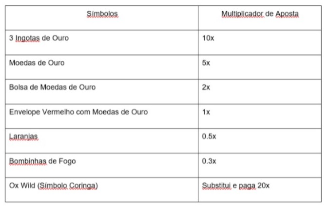 O Ox Wild é um símbolo especial. Ele pode substituir outros símbolos para formar mais combinações e pagar até 20 vezes o valor da aposta.