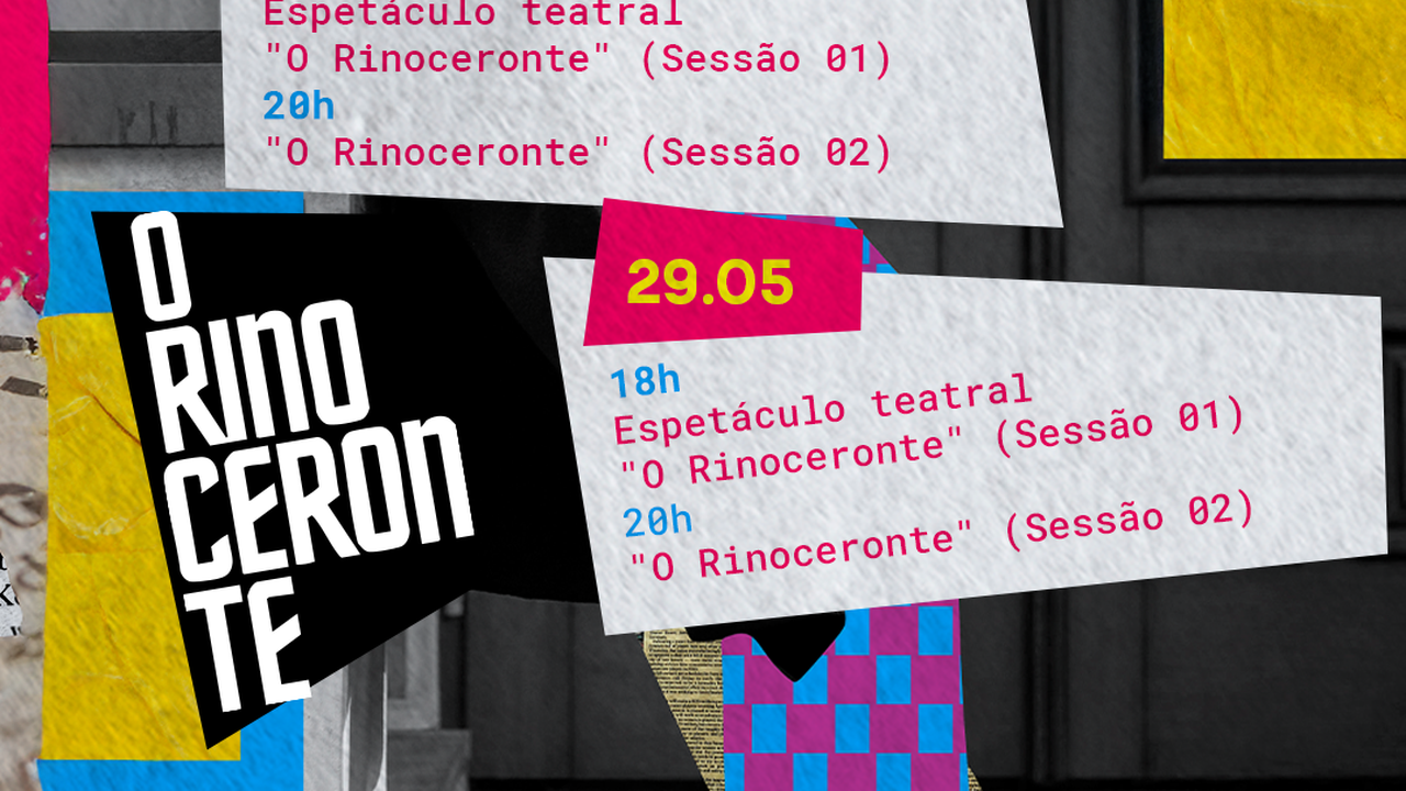 Inspirado em Frida Kahlo e Pina Bausch, propõe uma criação coletiva visceral e subjetiva. Classificação indicativa: 14 anos “O Rinoceronte” 28 e 29/5 – 18h e 20h | Theatro Homerinho Espetáculo de Teatro apresentado em quatro sessões, desenvolvido como trabalho de conclusão da turma do 4º módulo do Curso técnico em Teatro sob direção do professor Raphael Vianna.